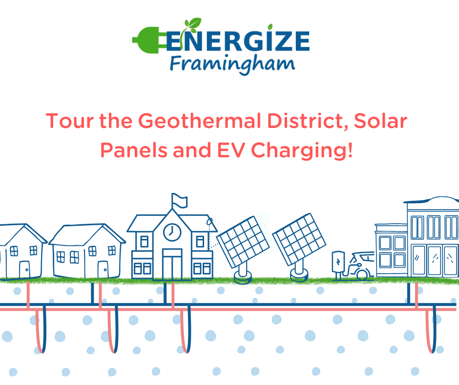 The first-in-the-nation networked geothermal project is connected to Framingham’s Farley School Administration building and is adjacent to the solar panels, battery storage and EV charging stations at Fuller Middle School. Join Framingham’s Sustainability Coordinator Shawn Luz and Energize Framingham for a tour to see these amazing projects. Find out how they work, ask questions and see the clean energy transition happening in Framingham.