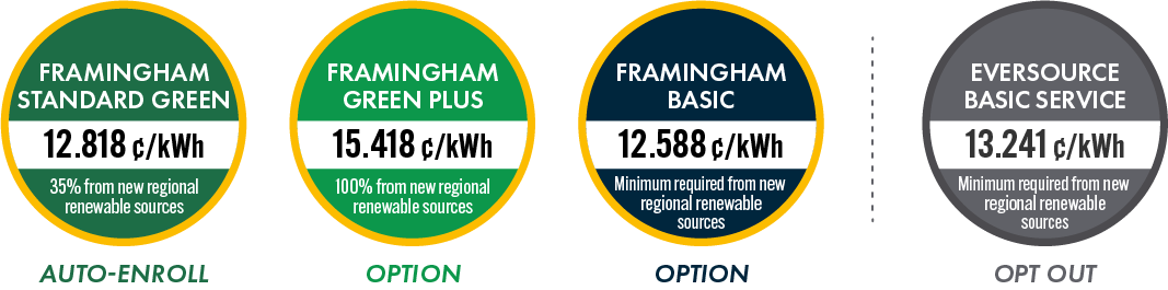 Framingham Community Electricity es un programa de compra de electricidad grupal para residentes y empresas de Framingham. Utilizando el poder adquisitivo de nuestra comunidad, el programa proporcionará: