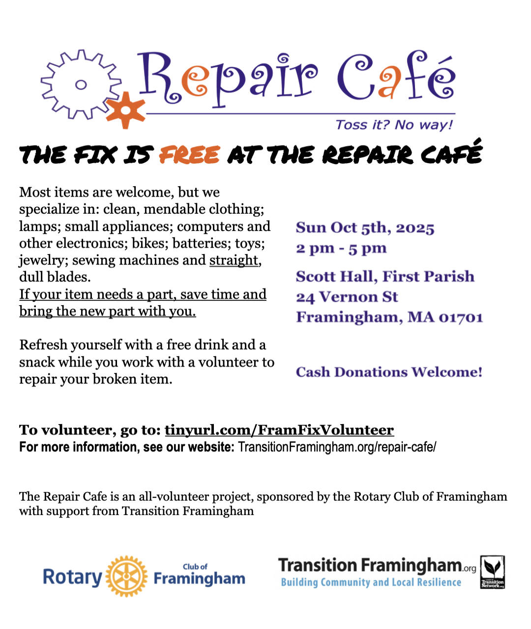 For more information, see our website: TransitionFramingham.org/repair-cafe/